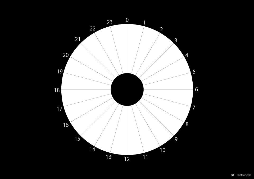 24 Hours Circle Schedule Black and White